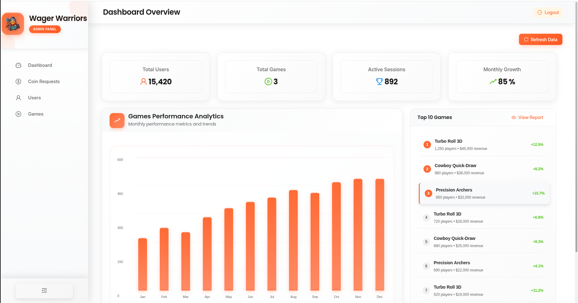 Wager Warriors Admin Panel